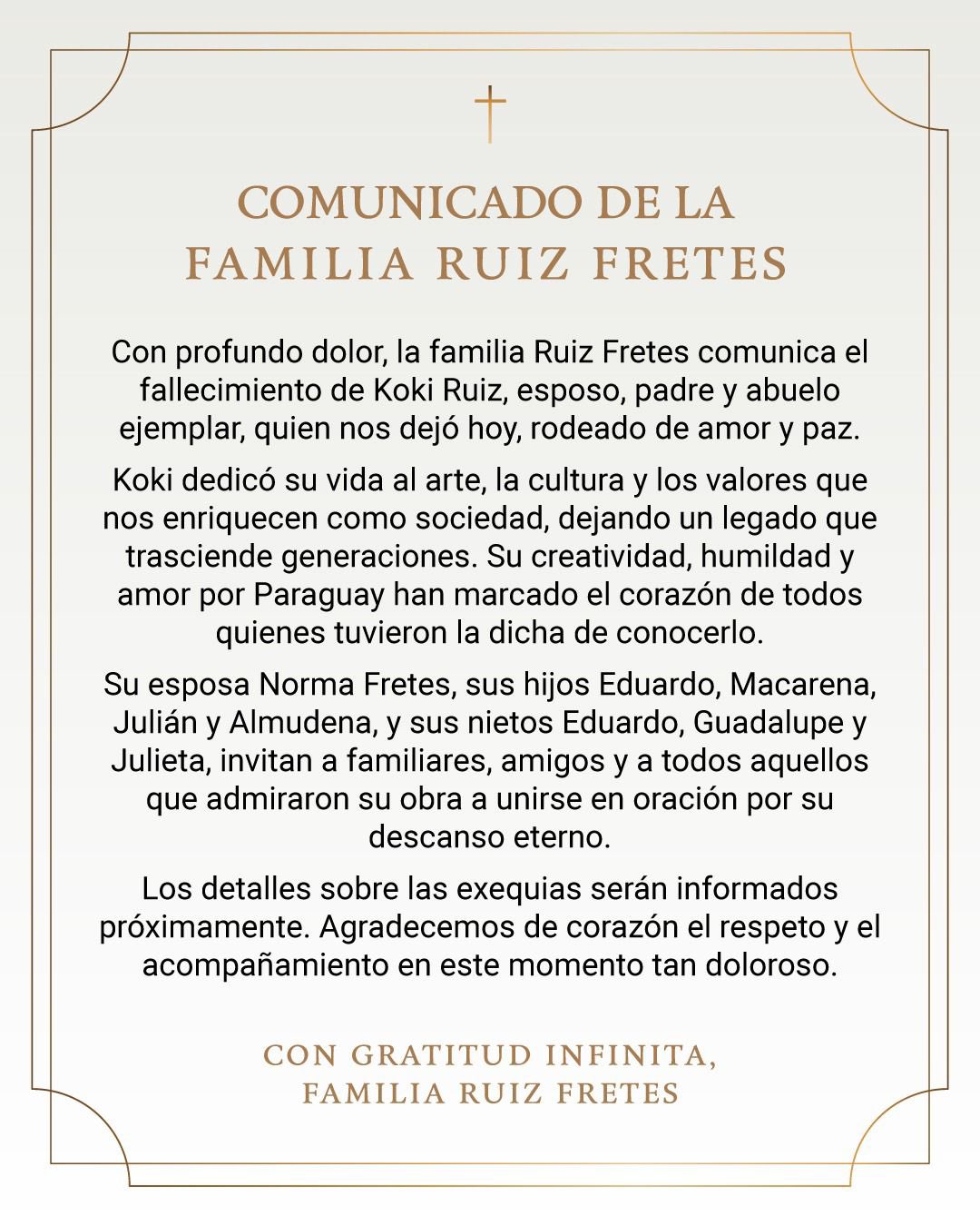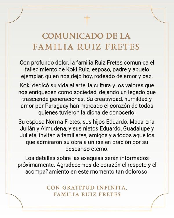 Fallece Koki Ruiz, el arte paraguayo pierde a un ícono