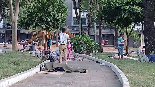 En la Plaza Uruguaya, los manifestantes instalaron precarias carpas y mantas para protegerse de las inclemencias del tiempo. Algunos integrantes del grupo señalaron que su situación es crítica, ya que muchos de ellos han viajado por días para llegar a Asunción y carecen de los recursos necesarios para mantenerse.