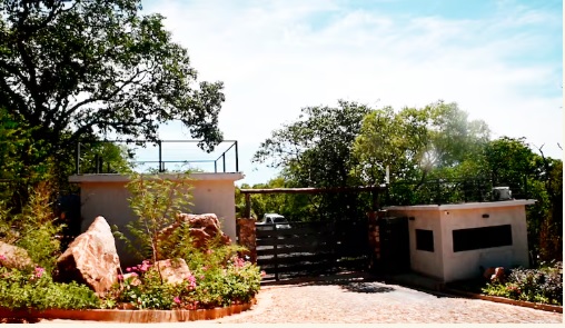Acceso con garitas de seguridad en la fachada principal de la ostentosa mansión de verano del Presidente Santiago Peña en San Bernardino.