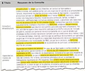Los requisitos establecidos en el Pliego de Bases y Condiciones (PBC) han despertado críticas por su naturaleza restrictiva. La exigencia de contar con 200 costureros en relación de dependencia y una capacidad de producción de 10.000 prendas diarias efectivamente excluye a las micro, pequeñas y medianas empresas del proceso licitatorio.