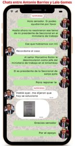 La gestión para la reposición del funcionario se aceleró cuando Gomes contactó al senador Antonio Barrios el 13 de septiembre. Las comunicaciones muestran cómo Barrios intervino en el asunto, logrando que en menos de 24 horas se emitiera la resolución que restituía a Rolón en su cargo, con una asignación de 8 millones de guaraníes.