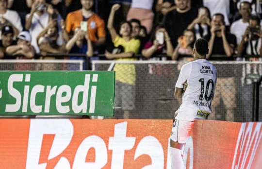 El momento cumbre del encuentro disputado en el estadio Major José Levy Sobrinho llegó a los 26 minutos del primer tiempo. En medio de silbidos e insultos de la afición local, Neymar se hizo cargo de un tiro de esquina desde el sector izquierdo. Lejos de inmutarse por la hostilidad ambiental, el brasileño miró desafiante a la tribuna y ejecutó un remate perfecto que describió una trayectoria imposible para el guardameta Igo Santos Pereira.