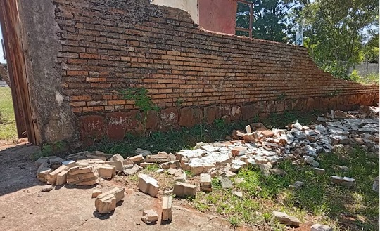 Helicóptero presidencial causó la caída de una muralla en Yaguarón.