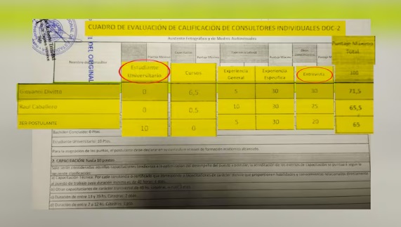 Esta manipulación deliberada de los criterios de evaluación resultó decisiva para que Giovanni Divitto Aquino obtuviera la posición, en detrimento de un candidato que realmente necesitaba el empleo. “Si yo quedaba (contratado) hubiese sido otra la historia de mi vida”, lamentó Caballero.