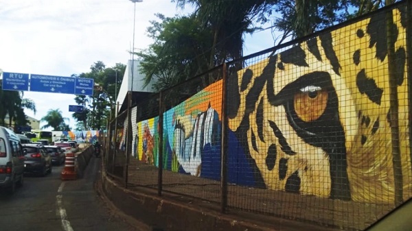 En el marco de los 60 años del Puente de la Amistad, que conecta Paraguay y Brasil, se lleva a cabo un proyecto artístico de gran escala. El mural, de 280 metros de extensión, es obra del reconocido artista brasileño Igor Izy y busca resaltar la riqueza cultural de la región, además de generar conciencia sobre la conservación del jaguar.