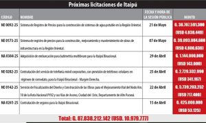 Las seis licitaciones actualmente en proceso incluyen diversos rubros estratégicos y servicios esenciales para la operación de la entidad. La única manera de que estas contrataciones sean auditadas sería mediante una orden directa del presidente de la República o de los directores paraguayos en la binacional, una situación que hasta el momento no se ha producido y que mantiene estos procesos millonarios fuera del escrutinio de los organismos de control del Estado.