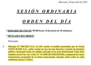 El intendente de Asunción, Óscar “Nenecho” Rodríguez (ANR-cartista), presentó este miércoles el mensaje 340/25 a la Junta Municipal. Este mensaje contiene la solicitud de Ueno Bank S.A. para usar una parte de la calle Guillermo Enciso Velloso, en el barrio Ykua Satî. El banco quiere tomar este espacio público. Es una calle sin salida, rodeada de propiedades del mismo grupo empresarial.