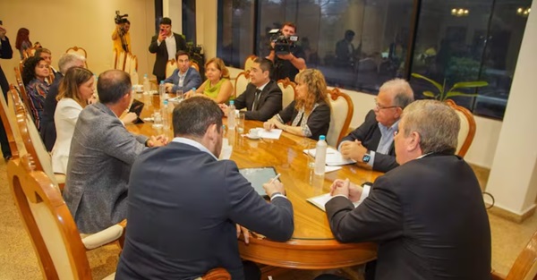 La suspensión se produjo mientras una delegación de legisladores y autoridades partidarias opositoras mantenían una reunión con el presidente del TSJE, Jaime Bestard, y los demás ministros de la máxima instancia electoral. La apertura de sobres prevista para el lunes próximo queda así postergada sin fecha definida tras la intervención del titular de la DNCP, Agustín Encina.
