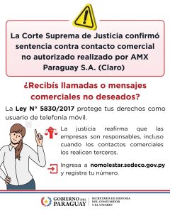 La Secretaría de Defensa del Consumidor y el Usuario (Sedeco) impulsa el uso del Registro Nacional “No Molestar”, una herramienta legal que permite a los usuarios de telefonía celular bloquear llamadas y mensajes publicitarios no deseados en todo el territorio paraguayo.