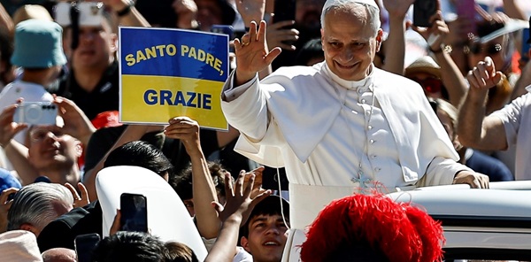 El Papa León XIV, rodeado de una multitud de fieles en la Plaza San Pedro, el domingo. Foto: EFE