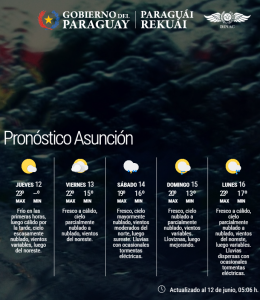 Meteorología también advierte que el fin de semana presentará inestabilidad climática, con altas chances de lluvias generalizadas. Esta situación afectaría especialmente a la Región Oriental, con posibles acumulados importantes.