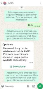 La Administración Nacional de Electricidad (ANDE) habilitó un nuevo canal de atención al cliente a través de la aplicación WhatsApp, incorporando a su asistente virtual “LUZ”, con el objetivo de mejorar la experiencia de los usuarios y facilitar el acceso a los servicios.