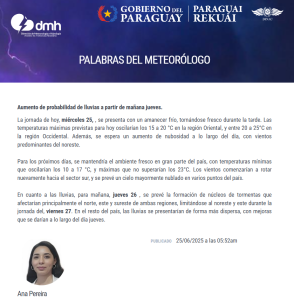 En la región Oriental, las máximas previstas oscilan entre 15 y 20 grados, mientras que en el Chaco podrían llegar hasta los 25 °C. La humedad relativa también muestra una variación significativa: del 80% registrado días atrás, se reduce a entre 50 y 55% en esta jornada.