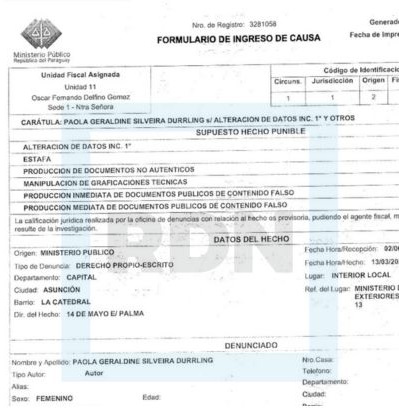 Investigación exclusiva de RDN descubrió que la consejera de la Embajada del Paraguay ante el Reino Unido de Gran Bretaña e Irlanda del Norte, Paola Geraldine Silveira Dürrling, fue denunciada ante el Ministerio Público por estafa y presunta falsificación de documentos académicos y otros hechos punibles. La presentación se realizó el 2 de junio de 2025 ante la Unidad Fiscal N.º 11, en Asunción, a cargo del fiscal Óscar Delfino.