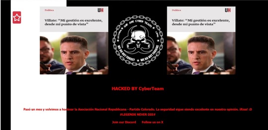 La página del Tribunal Electoral Partidario (TEP) de la Asociación Nacional Republicana (ANR) fue blanco de un nuevo ataque informático este jueves. El grupo denominado Cyber Team se adjudicó el hackeo y, con ironía, apuntó nuevamente al ministro de Tecnologías de la Información y Comunicación (Mitic), Gustavo Villate.