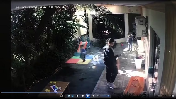 La víctima en el patio con otros niños y una adulto, antes de desaparecer del cuidado de las encargadas. Gentileza
