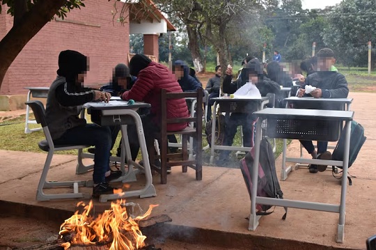 Mientras el discurso oficial insiste en mostrar una educación renovada, en el interior del país la realidad va por otro camino. En Santa Rosa del Aguaray (San Pedro) y en Remansito (Villa Hayes), estudiantes de escuelas públicas siguen dando clases a la intemperie, bajo temperaturas cercanas a 0°C, recurriendo a fogatas para soportar el frío. Las aulas, sencillamente, no existen.