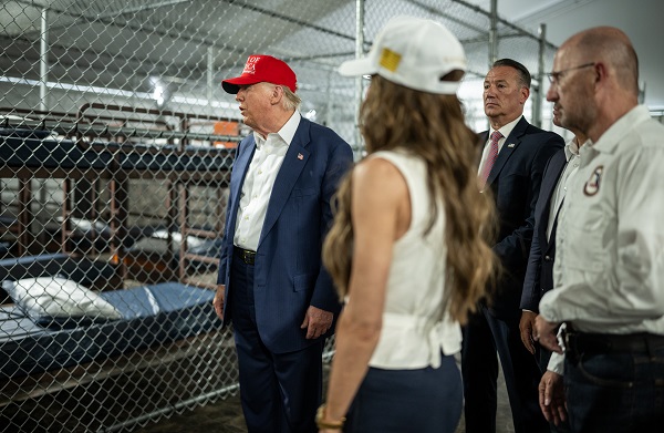 Donald Trump inauguró el 1 de julio el centro de detención denominado ‘Alligator Alcatraz’ en una zona remota del Parque Nacional de los Everglades, Florida. La instalación, construida en una semana según la Administración, está ubicada en un vasto humedal subtropical repleto de caimanes, cocodrilos y pitones, simbolizando la ofensiva gubernamental contra la inmigración irregular.