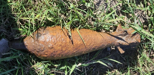 Dos niños encontraron una bomba oxidada mientras jugaban cerca de la escuela del barrio, en una cuneta frente al edificio escolar.