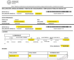 Lo que generó sospechas es que, en su declaración jurada presentada el 10 de febrero de este año, Gessica incluyó una vivienda valorada en G. 199.970.380.
