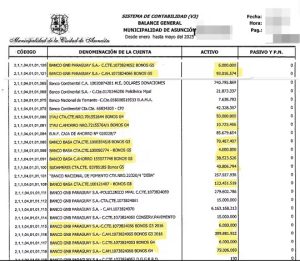 Los datos surgen del balance oficial de gestión municipal, que indica que en mayo quedaban apenas G. 923 millones en dichas cuentas, una caída abrupta frente a los G. 4.725 millones registrados al cierre de abril. Las diferencias en saldos afectan a varias cuentas específicas abiertas en el Banco GNB y Banco Basa.