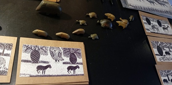 Además de los cuadros, las esculturas de palo santo llaman la atención por su nivel de detalle. Reproducen animales chaqueños con una estética refinada y muestran un dominio técnico poco habitual en artesanías hechas a mano en el lugar de origen. Cada pieza transmite identidad y conocimiento del entorno natural.