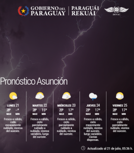 El inicio de esta semana trajo consigo un contraste térmico notable en el país. Este lunes 21 de julio, gran parte del país amaneció con temperaturas frescas, oscilando entre los 12 °C y 14 °C, especialmente en zonas del interior de la Región Oriental.