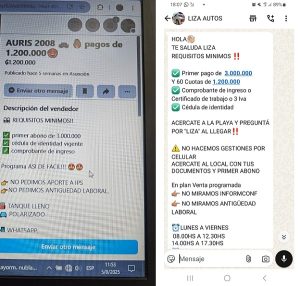 Portillo denunció que el 5 de julio de 2025 acudió al establecimiento motivado por publicidades en redes sociales que promocionaban la adquisición de vehículos mediante crédito directo. La propuesta incluía una entrega mínima de 3.000.000 de guaraníes y cuotas de 1.200.000 guaraníes, sin intermediación bancaria. En su caso específico, le ofrecieron un Toyota Auris 2013 bajo estas condiciones aparentemente favorables.