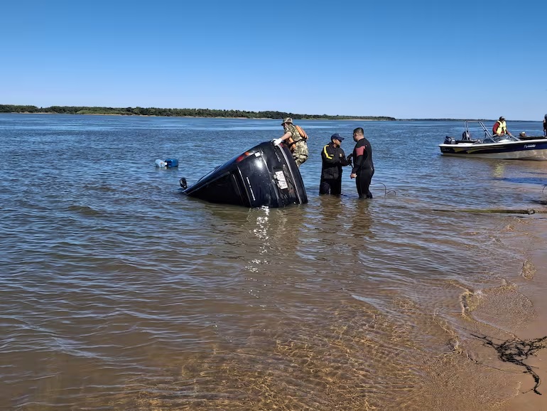 Personal de la Prefectura recuperó de las aguas del río Paraná el vehículo en el cual se encontraba la joven víctima. Miguel Ángel Rodríguez