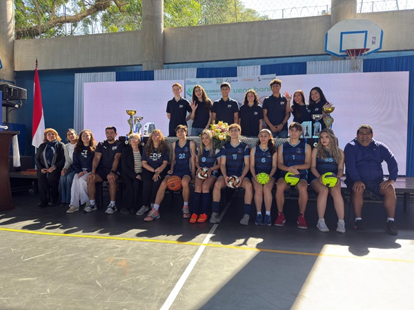 El Colegio del Sol presentó oficialmente su primer intercolegial deportivo, Del Sol Intercolegial 2025 con los main sponsors Transformation Technologies Inc y Ueno Bank, marcando un momento histórico para la institución educativa. La directora María de Lourdes Ruffinelli encabezó la ceremonia de lanzamiento junto al coordinador deportivo Pablo Amarilla y los representantes del comité organizador: Daniel Sánchez, Sebastián Mayeregger, Ana Beltramino, Gonzalo Ortigoza y Julieta Páez.