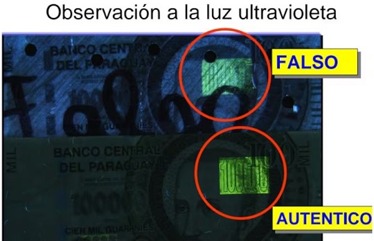 Ante este panorama, la Policía recomendó aplicar tres pasos básicos para detectar irregularidades: observar, palpar y girar. El primer paso consiste en revisar a contraluz la marca de agua, que debe ser bitonal, mostrando tanto un tono claro como uno oscuro con la figura del billete, como ocurre con la imagen de San Roque González en el de 100.000 guaraníes.