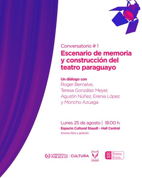 En el marco del Año Iberoamericano de las Artes Escénicas 2025, la Secretaría Nacional de Cultura anunció la realización del conversatorio Escenarios de Memoria y Construcción del Teatro Paraguayo. La cita será el lunes 25 de agosto, a las 18:00, en el Espacio Cultural Staudt, con acceso libre y gratuito, en conmemoración del Día Internacional del Actor y la Actriz.