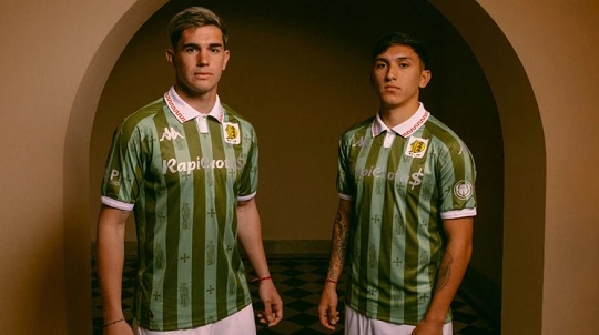 El lanzamiento más reciente se apoyó en una figura profundamente ligada a la cultura marplatense: San Jorge. Tras el ascenso milagroso del club en octubre de 2024, la camiseta homenajeó esa devoción popular con bastones verdes, un cuello blanco con guarda roja, rosas bordadas y la frase “Ruega por nosotros” en la espalda. La campaña fue definida por analistas como “arrogante y majestuosa”, uniendo fe, historia y fútbol.