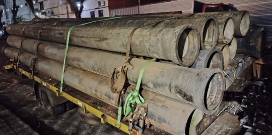 Durante la intervención, agentes de la Comisaría 1ª Central verificaron dos camiones cargados con un total de 35 tubos metálicos de gran porte. Según estimaciones preliminares, el lote de materiales tendría un valor cercano a los 700 millones de guaraníes.