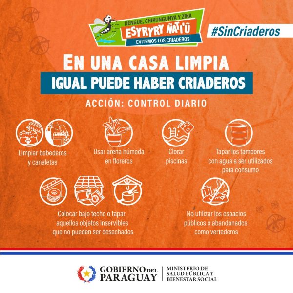 Con los pronósticos de más lluvias en varias zonas del país, la cartera sanitaria insiste en que la prevención depende en gran medida de la eliminación de criaderos domiciliarios. Mantener los espacios limpios y libres de agua acumulada sigue siendo la principal barrera para evitar la propagación del dengue en la temporada que se inicia.
