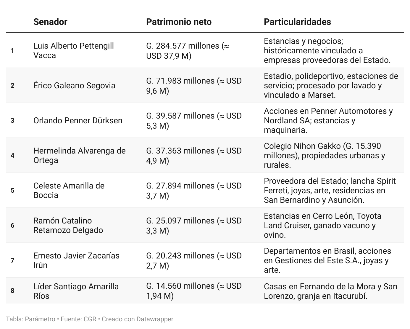 Senadores millonarios: Pettengill y Erico Galeano lideran el ranking en el Congreso