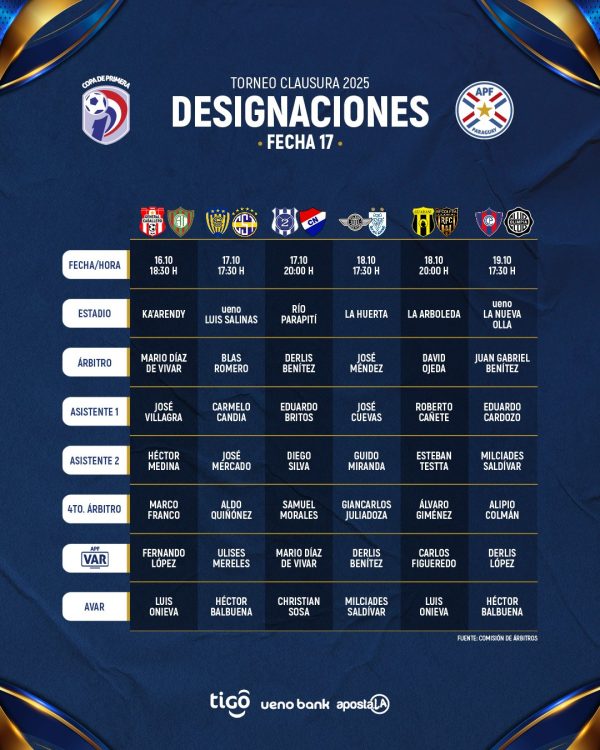 La Asociación Paraguaya de Fútbol confirmó que Juan Gabriel Benítez será el árbitro del superclásico entre Cerro Porteño y Olimpia, que se disputará este domingo en el estadio de Ueno la Nueva Olla. Con esta nueva designación, el juez acumula siete presencias en el enfrentamiento más importante del fútbol paraguayo.