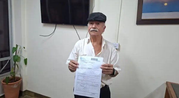 Denunciante. Pablo Román exhibe el certificado de condiciones de dominio que dice que la propiedad está a su nombre.Foto: Gentileza.