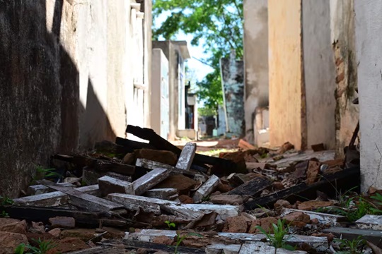El deterioro estructural alcanza a numerosos panteones. Si bien el mantenimiento corresponde a propietarios, no se registran acciones efectivas para exigir regularizaciones. Hay nichos con ataúdes y restos óseos expuestos, además de paredes y techos con revoques desprendidos, humedad y grietas. El encargado Arsenio Bobadilla reporta unas 8.046 tumbas numeradas en un área estimada de cinco hectáreas, más fosas comunes no contabilizadas. Señala notificaciones reiteradas sin respuestas y daños no reparados tras una tormenta de hace casi un año.