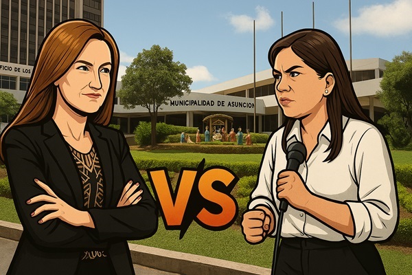 Frente a la Municipalidad de Asunción, dos referentes opositoras simbolizan la pulseada interna por la candidatura capitalina, en un choque “cara a cara”. Imagen generada con ChatGPT.