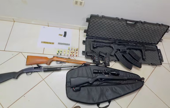 En una de las viviendas registradas, atribuida al ciudadano brasileño Gilberto Mohr, de 58 años, los intervinientes hallaron dos escopetas calibre 12, un rifle calibre 22 y una pistola calibre 9 mm. Las armas fueron aseguradas y etiquetadas en el lugar. Posteriormente, el equipo procedió a su traslado conforme a cadena de custodia.