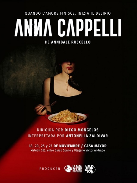 El unipersonal Anna Cappelli, del dramaturgo italiano Annibale Ruccello, sube a escena en Sala Teatro – Galería de Arte Casa Mayor con la actriz Antonella Zaldivar bajo la dirección de Diego Mongelós. La obra, considerada por su autor como un texto de fuerte carga emotiva, se presentará en cuatro funciones programadas para los martes y jueves de noviembre, con estreno el martes 18 a las 20:00.