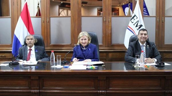 Manuel Ramírez Candia, Alicia Pucheta y Diego Candia Melgarejo, en la sesión del Jurado de Enjuiciamiento de Magistros de este jueves. Foto: Gentileza - JEM.