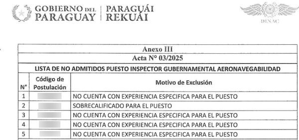 La convocatoria de la Dirección Nacional de Aeronáutica Civil (Dinac) para el cargo de Inspector Gubernamental de Aeronavegabilidad quedó bajo fuertes cuestionamientos. Denuncias y documentos acercados señalan que postulantes con alta formación técnica habrían sido excluidos del concurso por estar “sobrecalificados”. La situación afecta a un puesto clave dentro de la estructura de control del transporte aéreo.