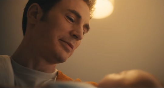 Durante el metraje, Steve deja un casco que recuerda al que utilizaba en sus años como Vengador. Luego sostiene su clásico traje, lo observa por un momento y parece debatirse entre volver a usarlo. Sin embargo, la escena cambia y muestra al personaje cargando a un niño en sus brazos, marcando un contraste entre su vida pasada y su presente.