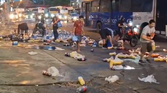 Aprovechando la situación, vecinos y transeúntes comenzaron a llevarse las bebidas que habían caído. En cuestión de minutos, gran parte de la mercadería ya había desaparecido, en lo que terminó siendo un saqueo masivo.