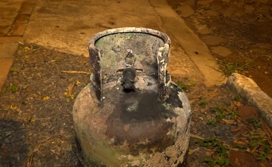 De acuerdo con el testimonio, la manguera se derritió rápidamente debido al fuego, lo que provocó una pequeña explosión. Las llamas alcanzaron un mueble de madera de la cocina, que se quemó en pocos minutos.