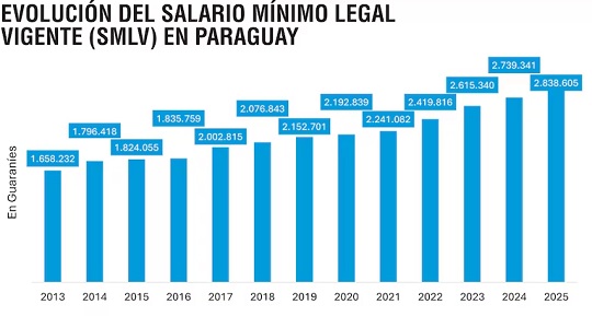 Leé también: Salario mínimo paraguayo se ubica en el octavo lugar de la región y corre riesgo de perder competitividad en 2025
