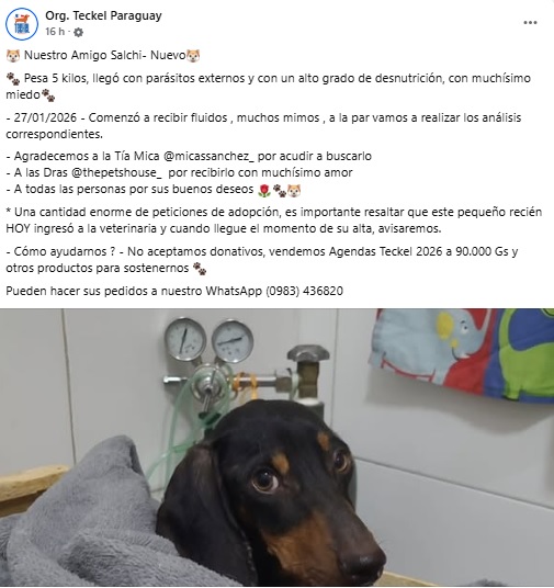 El caso rápidamente se hizo viral en redes sociales. Muchas personas ofrecieron adoptarlo, pero los rescatistas pidieron calma. El perrito seguirá bajo observación hasta que su estado mejore y reciba el alta médica. Solo entonces se analizará su posible adopción, que será informada por los canales oficiales de Teckel Paraguay.
