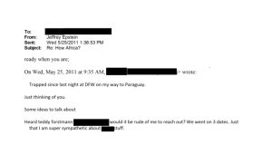 En este amplio paquete aparece además una referencia directa a Paraguay: una transcripción de correo electrónico en la que una persona no identificada escribe a Epstein que está “atascado desde anoche en el aeropuerto de Dallas camino a Paraguay”, menciona que tiene ideas para discutir, cita a un abogado y empresario estadounidense y consulta si puede contactarlo. El mensaje, enviado el 25 de mayo de 2011, recibió horas después una breve respuesta de Epstein: “Estoy listo cuando tú lo estés”.